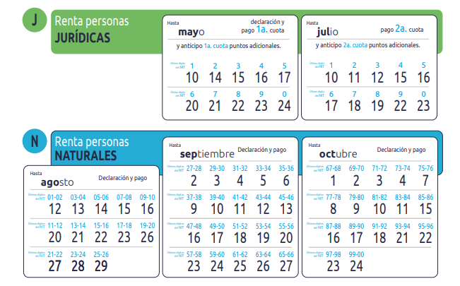 PERSONAS NATURALES: Dos ultimos digitos de numero de Cedula Ejemplo 45.720.830 tomo para ubicar en el calendario el rango donde se ubique el numero 30 seccion Renta personas Naturales