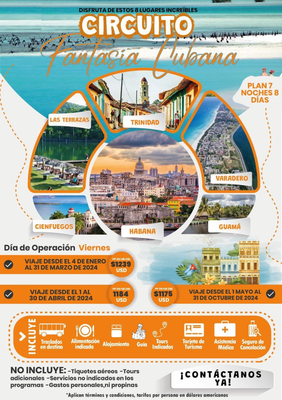 ¡Descubre la vibrante isla de Cuba con nosotros! Sumérgete en la rica cultura, la música contagiosa y la calidez de su gente. Ciudad sin precedentes, La Habana conserva ese atractivo mítico e imperecedero que la convirtió en la más importante del reino de España en esta parte del orbe. Su histórica zona, declarada Patrimonio Cultural de la Humanidad, es tiempo pasado envuelto en el halo mágico del encanto. Edificaciones militares y residenciales que marcaron hitos en los ya lejanos siglos XVI, XVII y XVIII, siguen mostrando la impronta de entonces: sus calles adoquinadas, sus musgos ancestrales, sus balaustradas y los arcos de medio punto que acrisolan los interiores coloniales descomponiendo los colores cálidos del Trópico. A ello se imbrica, armónicamente, una Habana privilegiada por excelentes playas ubicadas al este de la ciudad, notables centros comerciales, amplias avenidas y una infraestructura turística en constante crecimiento. ¡Ven y descubre la magia de Cuba con nuestra agencia de viajes!